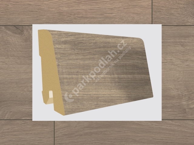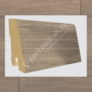 Obvodová lišta soklová od německého výrobce Egger. Typ lišty 6cm, rozměr 60x17x2400mm, dekor L414.