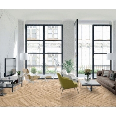 Vinylová SPC plovoucí podlaha od německého výrobce Falquon. P1003 HB Dub Vail. Herringbone (rybí kost) - nově vivynuta generace SPC podlahových krytin e.marble® na minerální bázi bez formaldehydu. Podlaha je voděodolná, odolná proti oděru.