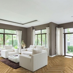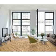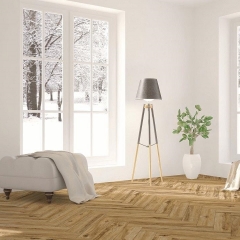 Vinylová SPC plovoucí podlaha od německého výrobce Falquon. P1004 HB Dub Riley. Herringbone (rybí kost) - nově vivynuta generace SPC podlahových krytin e.marble® na minerální bázi bez formaldehydu. Podlaha je voděodolná, odolná proti oděru.