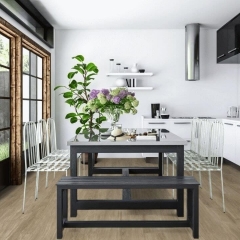 Vinylová SPC plovoucí podlaha od německého výrobce Falquon. P6003 Dub Calm. WOOD (SPC) - tato kolekce nabízí krásné, moderní a kvalitní dekory, které imitují pravé dřevo. Nově vyvinutá nosná deska této podlahy je založená na minerální bázi (SPC) bez obsahu formaldehydu a je vyrobená z nejjemněji mletého mramoru, díky tomu je vhodná i do prostor se zvýšenou vlhkostí. Jednotlivé lamely jsou opatřeny celoobvodovou mikro V-spárou pro zvýraznění jednotlivých lamel (prken). Instalace této podlahy je díky zámkovému spojení jednotlivých lamel velmi jednoduchá. Součástí této podlahy je integrovaná akustická podložka. Předností této podlahy je i minimální uhlíková stopa, kterou za sebou lamely zanechávají, nezatěžují tak životní prostředí vysokými emisemi CO2 ani dalšími nebezpečnými skleníkovými plyny. Celá výroba podlahy probíhá v Německu z evropských surovin. Produkt je plně recyklovatelný. Řada WOOD - ideální podlaha pro Váš domov ...