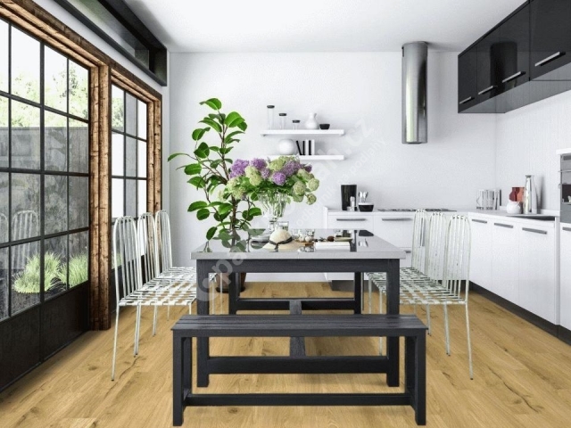 Vinylová SPC plovoucí podlaha od německého výrobce Falquon. Kolekce WOOD (SPC), dekor P6003 Dub Calm.