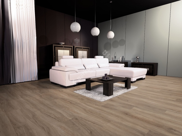 Vinylová vrstvená plovoucí podlaha od českého výrobce Fatra. Kolekce FatraClick, HDF, dekor Dub Cer hnědý 7301-5.