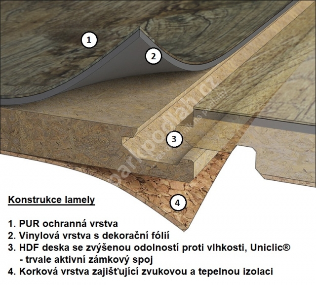 | Nosná deska | HDF deska se zvýšenou odolností proti vlhkosti |