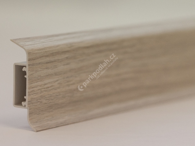 Obvodová lišta soklová od českého výrobce Fatra. Typ lišty THX, dekor L0032, rozměr 52,6x12,5mm.