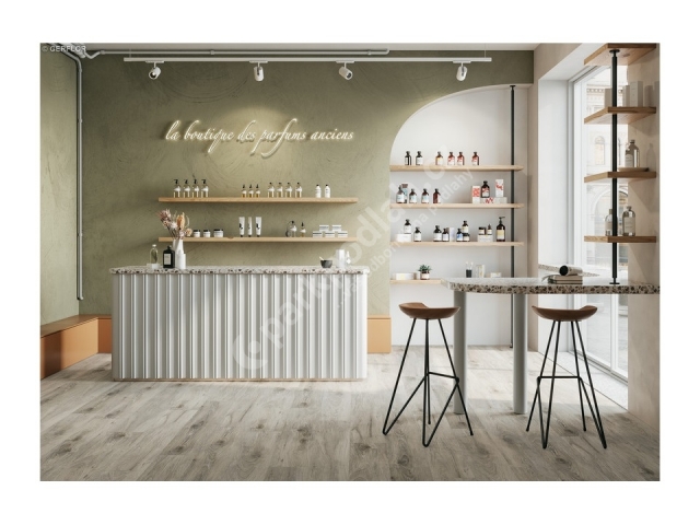 Gerflor, Creation 55, 1290 White Lead Oak Shadow Grey EIR - registrovaný embossing