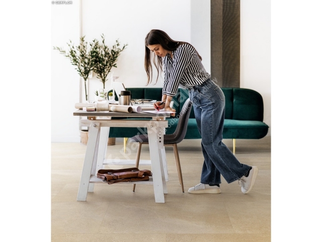 Vinylová plovoucí Rigid podlaha od světového výrobce Gerflor. Kolekce Creation 55 Lock Acoustic (Rigid), dekor 1276 Curton Stone Light Beige.
