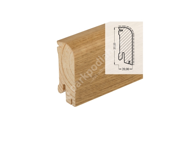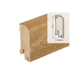 Obvodová lišta soklová od německého výrobce Hoco. Typ lišty 610 UM, 55x22mm, Dub, dýha, lak.
