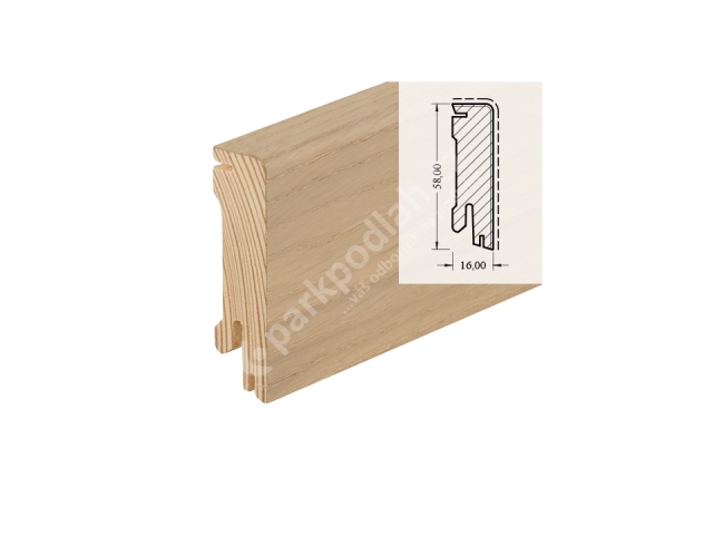 Obvodová lišta soklová od německého výrobce Hoco. Typ lišty 631 UM Woodlink Colour, 58x16mm, Dub Alpine, dýha, olej.