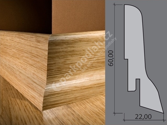 Obvodová lišta soklová od švédského výrobce Kährs. Typ lišty 60x22mm, dekor Dub bílý.