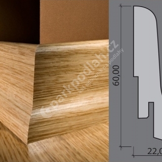 Obvodová lišta soklová od švédského výrobce Kährs. Typ lišty 60x22mm, dekor Dub Olof.