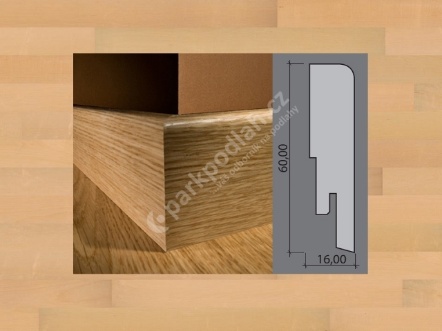 Obvodová lišta soklová od švédského výrobce Kährs. Typ lišty 60x16mm, dekor Javor kanadský - je vhodný k podlaze Javor Creme a Javor Spring.