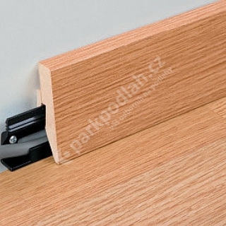 Obvodová lišta soklová od německého výrobce Meister. 3 PK, Dub arktický bílý 1156. Stabilní MDF jádro těchto lišt je potažené pravou dřevěnou dýhou, která je proti opotřebení chráněná velmi kvalitním UV-akrylátovým lakem Duratec. Montáž lišty se provádí nácvakem na originální plastové klipy. Alternativním způsobem montáže je lepení na oboustrannou pásku nebo na lepidlo, možno i v kombinaci s přibíjením nebo šroubováním. 3 PK - originální lišta k Vaší podlaze, to nejlepší řešení...