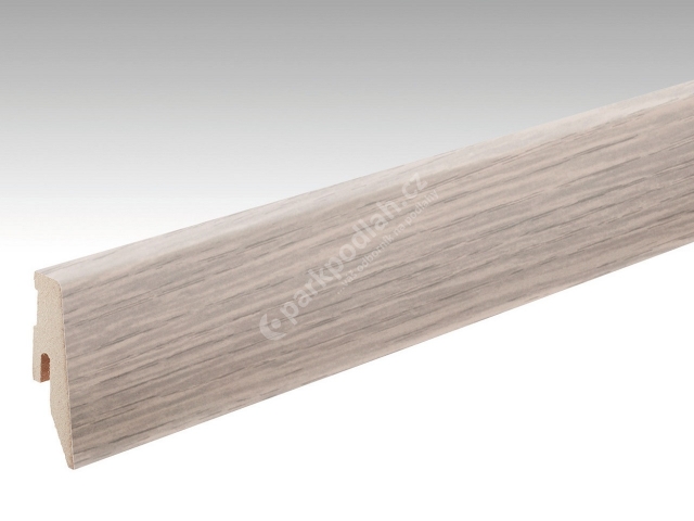 Obvodová lišta soklová od německého výrobce Meister. Kolekce 3 PK, dekor Dub arktický bílý 1156, 60x20mm, dýha, lak.