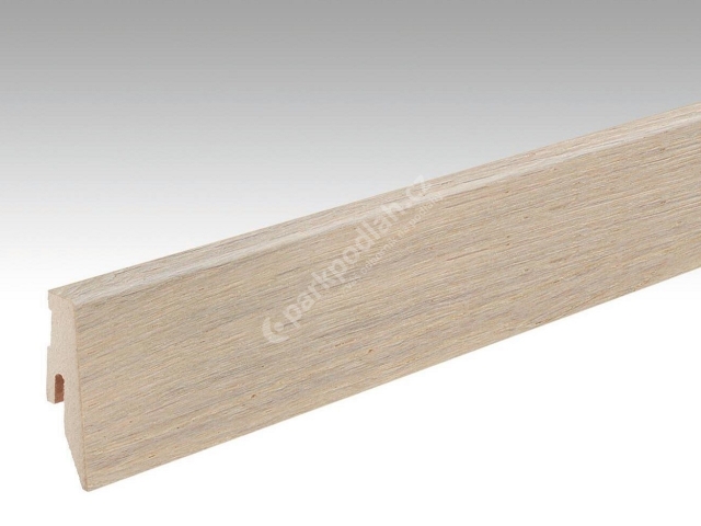 Obvodová lišta soklová od německého výrobce Meister. Kolekce 3 PK, dekor Dub bílý 1236, 60x20mm, dýha, lak.
