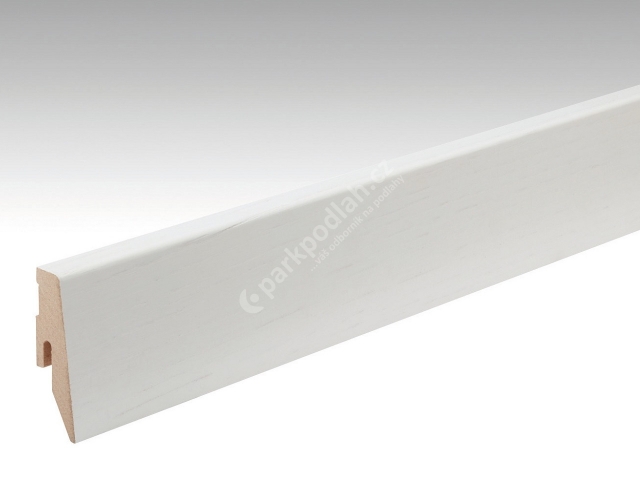 Obvodová lišta soklová od německého výrobce Meister. Kolekce 3 PK, dekor Dub bílý matný 1079, 60x20mm, dýha, lak.