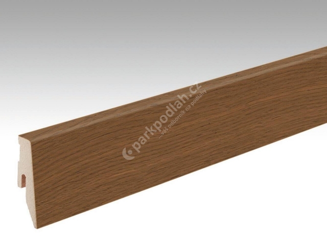 Obvodová lišta soklová od německého výrobce Meister. Kolekce 3 PK, dekor Dub hnědý 1235, 60x20mm, dýha, lak.