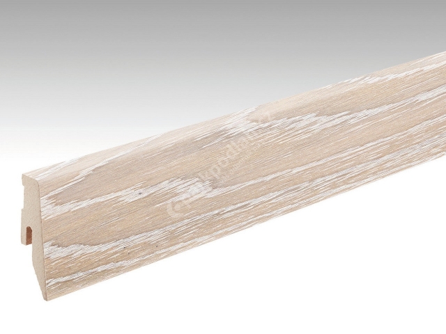 Obvodová lišta soklová od německého výrobce Meister. Kolekce 3 PK, dekor Dub polárně bílý vápněný 1200, 60x20mm, dýha, lak.