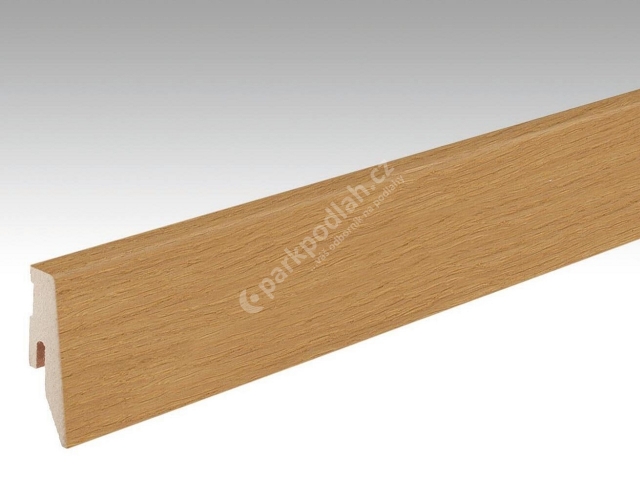 Obvodová lišta soklová od německého výrobce Meister. Kolekce 3 PK, dekor Dub světle hnědý 1239, 60x20mm, dýha, lak.