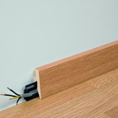 Obvodová lišta soklová od německého výrobce Meister. Typ lišty 3 PK, dekor Dub zámecký tmavý 6842, 60x20mm.