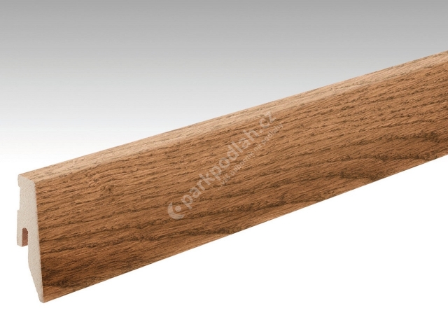 Obvodová lišta soklová od německého výrobce Meister. Kolekce 3 PK, dekor Dub zlatohnědý 1180, 60x20mm, dýha, lak.