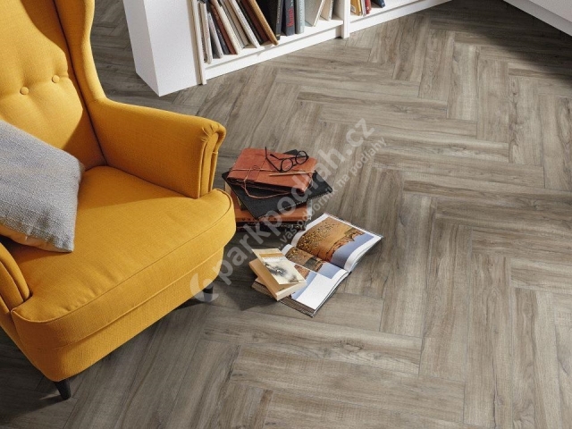 Laminátová plovoucí podlaha od německého výrobce My Floor. MH1004 Dub Montmelo stříbrný. Castle - rybí kost. Dekory v této kolekci jsou v autentickém a elegantním vzhledu, které nerozeznáte od pravého dřeva. Z ekologických důvodů je dřevo získávané z udržitelných lesů, tudíž je podlaha vyrobená z přírodních obnovitelných surovin a materiálů na bázi dřeva s minimálním dopadem na životní prostředí. Podlaha je navržena, tak aby odolala zvýšené vlhkosti, díky borovici z Brandenburských lesů, která je bohatá na pryskyřici a speciální procesy lepení zajišťují výrazně snížené bobtnání laminátové podlahy.