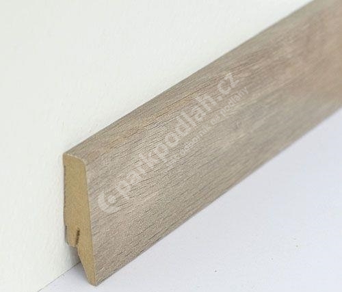 Obvodová lišta soklová od německého výrobce My Floor. Typ lišty Ktex1, dekor ML1018 Dub Makro béžový, 58x19mm.