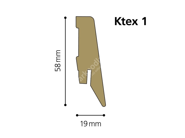 Obvodová lišta soklová od německého výrobce My Floor. Typ lišty Ktex1, dekor MV856 Dub Montmelo přírodní, 58x19mm.