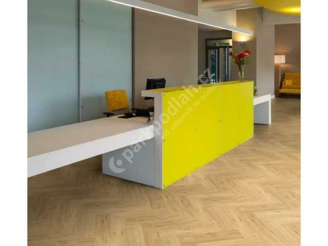 Vinylová lepená podlaha od německého výrobce Objectflor. Dekor 4122 French Vanilla Oak Parquet, kolekce Expona Commercial 55.