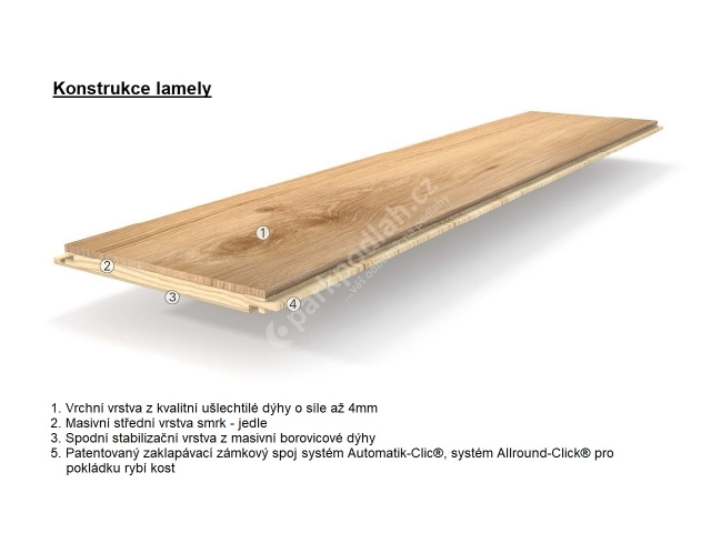 | Typ spoje lamel | Systém Automatic-Click s podélným a čelním uzavřením hran |