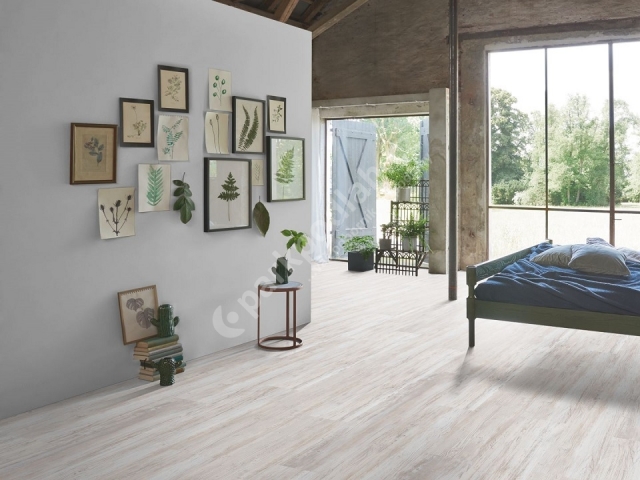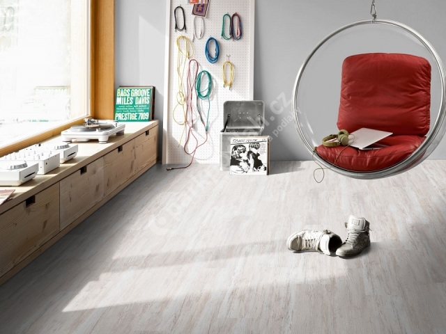 Vinylová podlaha určená k lepení od německého výrobce Parador. Kolekce Basic 2.0, dekor Pinie skandinávská bílá, selský vzor.