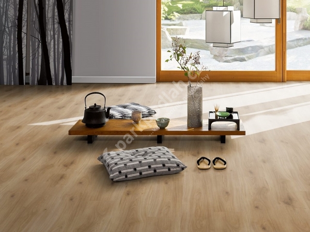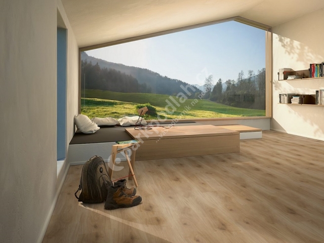 Laminátová plovoucí podlaha od německého výrobce Parador. Kolekce Basic 400, dekor Dub Horizont přírodní, selský vzor.