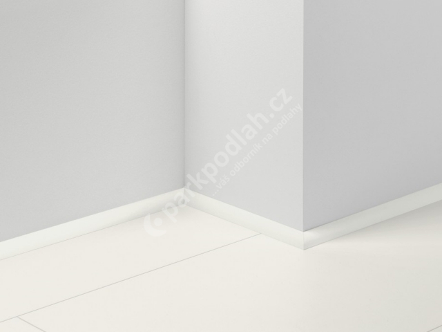 Obvodová lišta soklová od německého výrobce Parador. Typ lišty čtvrtkruhový profil, dekor Bílý základní nátěr D004, 14x20mm.