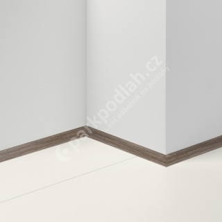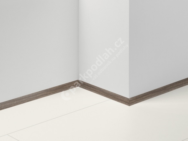 Obvodová lišta soklová od německého výrobce Parador. Typ lišty čtvrtkruhový profil, dekor Jasan D002, 14x20mm.
