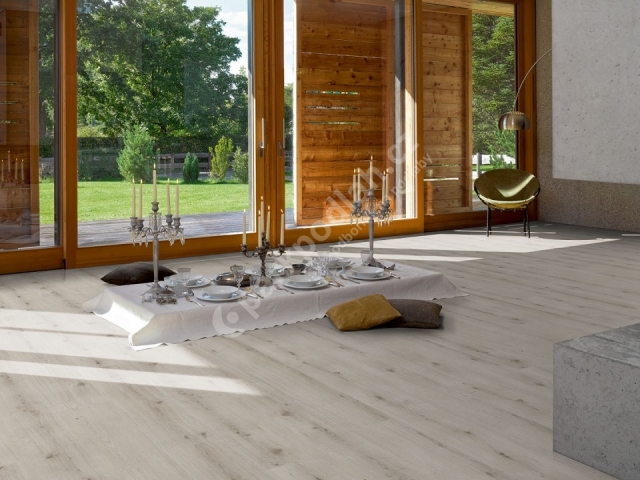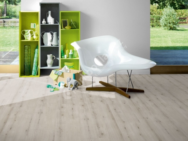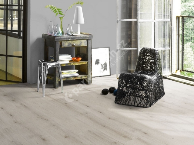 Vinylová vrstvená plovoucí podlaha od německého výrobce Parador. Dub Urban bílý bělený, zámecká palubka, V4. Modular ONE.