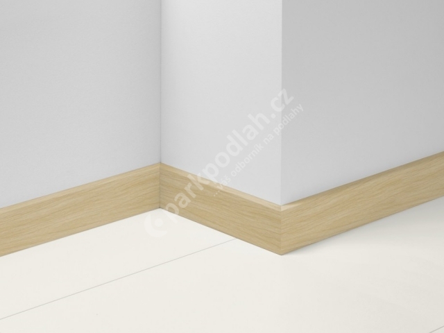 Obvodová lišta soklová od německého výrobce Parador. Typ lišty SL 18, dekor Javor D001, 70x16,5mm.