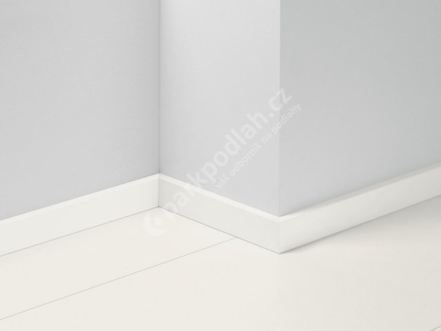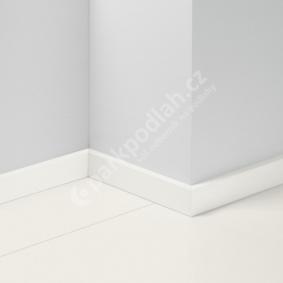 Obvodová lišta soklová od německého výrobce Parador. Typ lišty SL 5, dekor Bílý základní nátěr D004, 50x16mm.