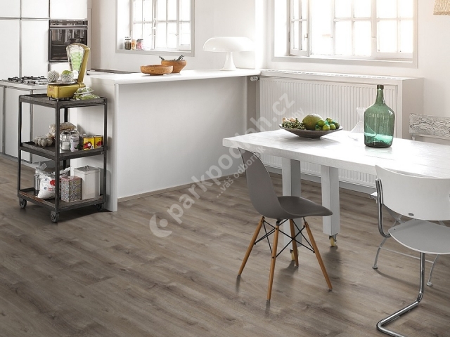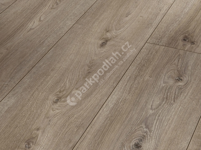 Laminátová plovoucí podlaha od německého výrobce Parador. Kolekce Trendtime 6, dekor Dub Valere tmavě bělený, zámecká palubka, V4.