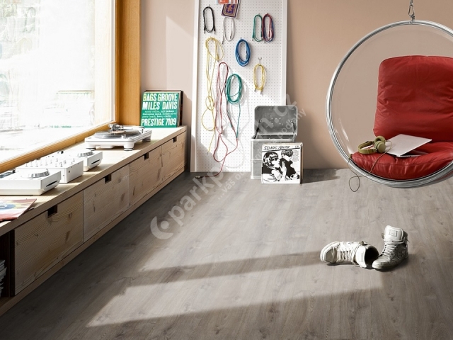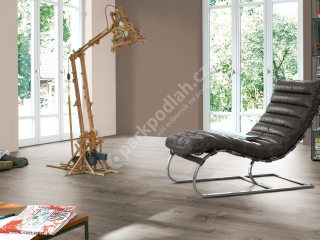 Laminátová plovoucí podlaha od německého výrobce Parador. Dub Valere tmavě bělený, zámecká palubka, V4. Trendtime 6