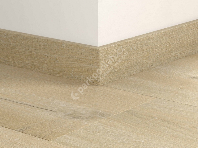 Vinylová soklová lišta od belgického výrobce Quick-Step. 20328 Dub lněný šedobéžový. Standardní soklová lišta - tyto lišty mají stabilní jádro z MDF desky potažené vinylovou podlahou tl. 2,5mm (totožný dekor s podlahou). Tímto se lišta stává velmi odolnou proti mechanickému namáhání. Montáž lišty se provádí lepením, možno i v kombinaci s přibíjením nebo šroubováním. Standardní soklová lišta - dokonalé originální zakončení vaší podlahy, to nejlepší řešení ...
