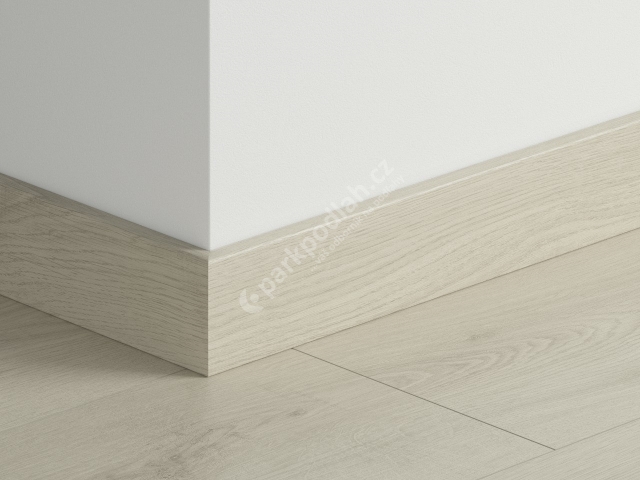 Obvodová lišta soklová od belgického výrobce Quick-Step. Typ 58x12mm, dekor 5800 Dub arašídově hnědý.