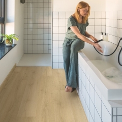 Vinylová plovoucí podlaha od belgického výrobce Quick-Step. Kolekce Bloom, dekor Dub kartáčovaný béžový AVMPU40319.