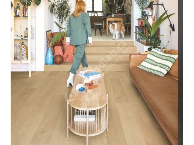 Vinylová plovoucí podlaha od belgického výrobce Quick-Step. Kolekce Blos Base, dekor Dub pobřežní béžový AVSPT40321.