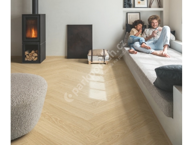 Vinylová plovoucí podlaha od belgického výrobce Quick-Step. Dub ryzí nachový AVHBU40359. Ciro - nová kolekce Alpha Vinylu - Herringbone. Tato kolekce nabízí "teplé a přírodní" dekory. Pokládka podlahy je jednodušší díky zámkovému systému Unizip ( stačí pouze jeden typ prken, prkno se dá zacvaknout na obou stranách). Předností podlahy je i její voděodolnost. Součástí každé "parkety" je integrovaná podložka. Ciro - ideální, krásná, voděodolná podlaha ........