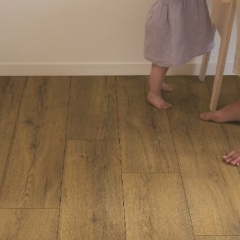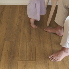 Laminátová plovoucí podlaha od belgického výrobce Quick-Step. Kolekce Classic, dekor CLM5793 Dub kakaově hnědý.