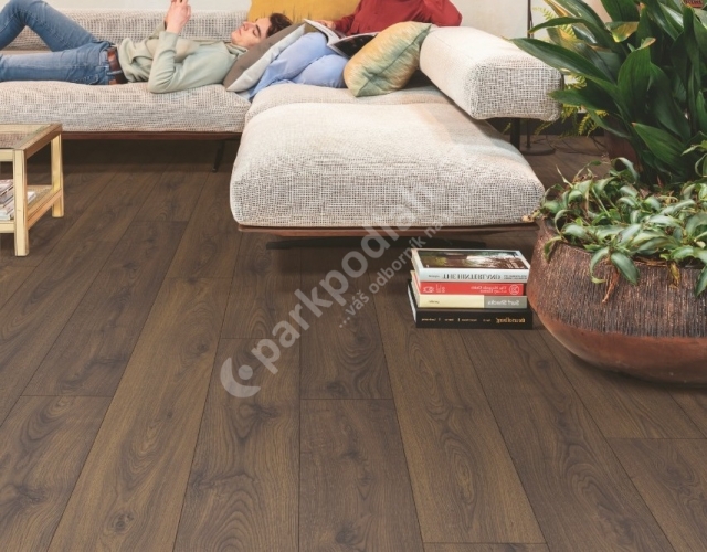 Laminátová plovoucí podlaha od belgického výrobce Quick-Step. Kolekce Classic, dekor CLM5800 Dub arašídově hnědý.