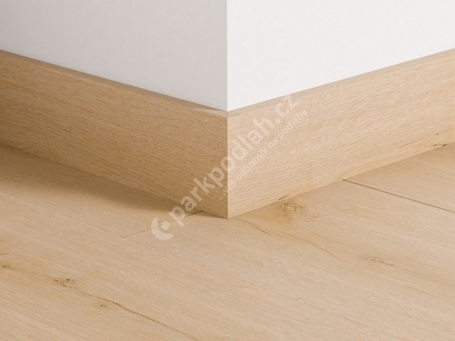 Obvodová lišta soklová od belgického výrobce Quick-Step. Typ 77x14mm, dekor Dub Bavlna 8254.
