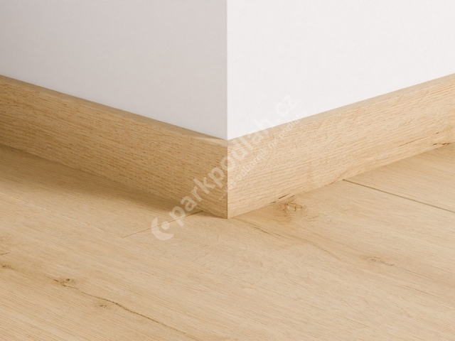 Obvodová lišta soklová od belgického výrobce Quick-Step. Typ 58x12mm, dekor Dub mandlový 8255.