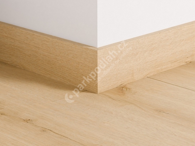 Obvodová lišta soklová od belgického výrobce Quick-Step. Typ 77x14mm, dekor Dub mandlový 8255.