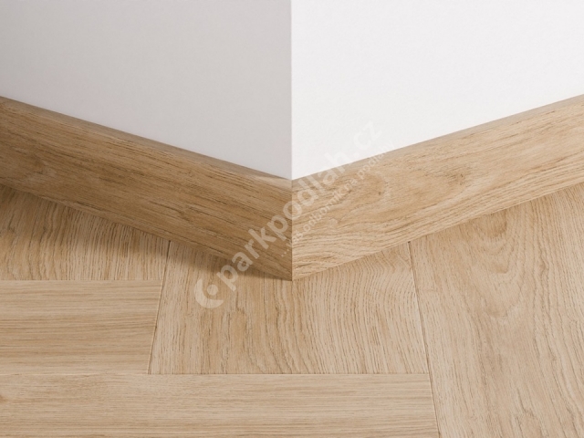 Obvodová lišta soklová od belgického výrobce Quick-Step. Typ 58x12mm, dekor Dub spálený 8245.