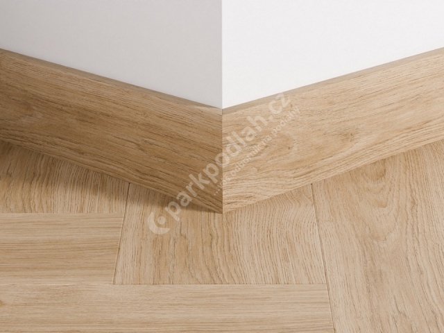 Obvodová lišta soklová od belgického výrobce Quick-Step. Typ 77x14mm, dekor Dub spálený 8245.